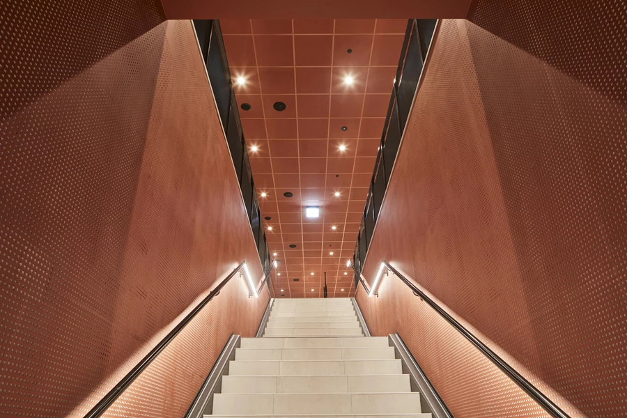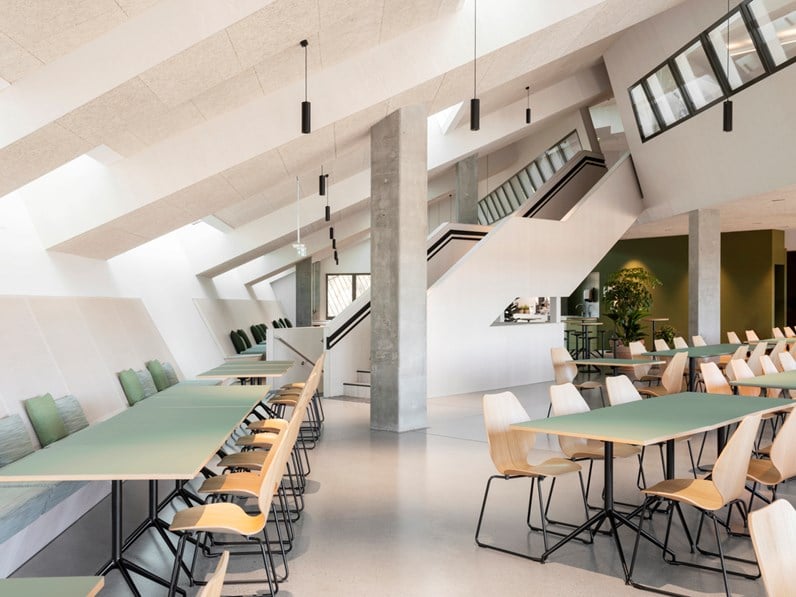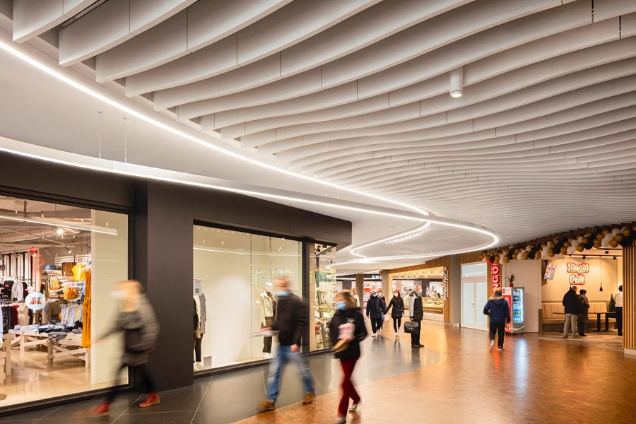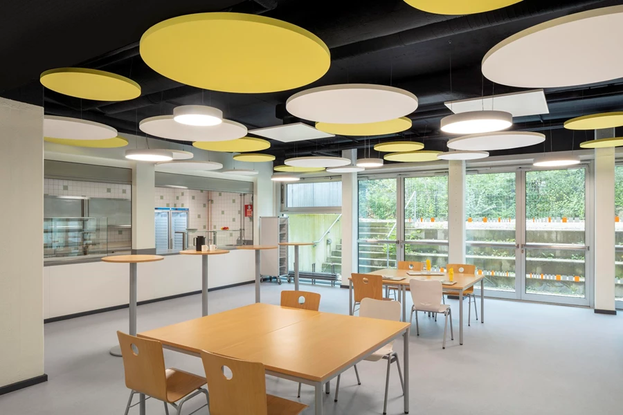 Nenápadný akustický strop Fade™ sa skladá z akustickej omietky a zvukových absorbérov, vďaka čomu účinne pohlcuje nežiadúcu ozvenu v priestore.