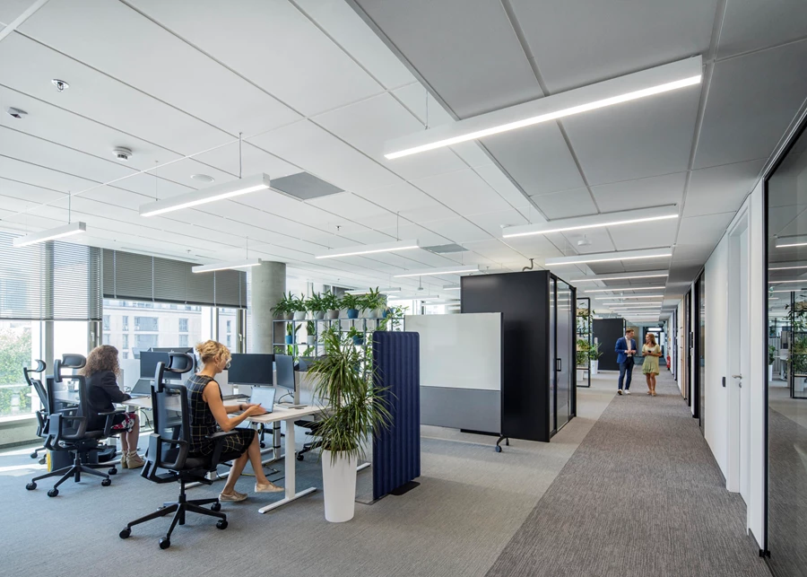 Akustické panely, či akustické kazetové stropy Ecophon ponúkajú 11 tried a každá z nich je určená pre špecifické požiadavky pracovísk.