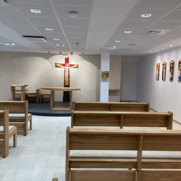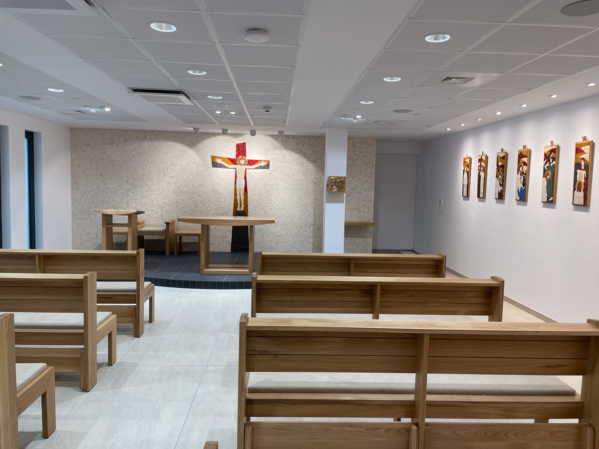 Náš klient chcel vizuálne a akusticky spríjemniť pobyt v priestoroch kaplnky Onkologického ústavu sv. Alžbety na ulici Heydukova.