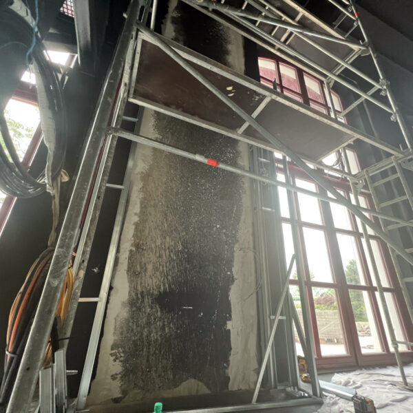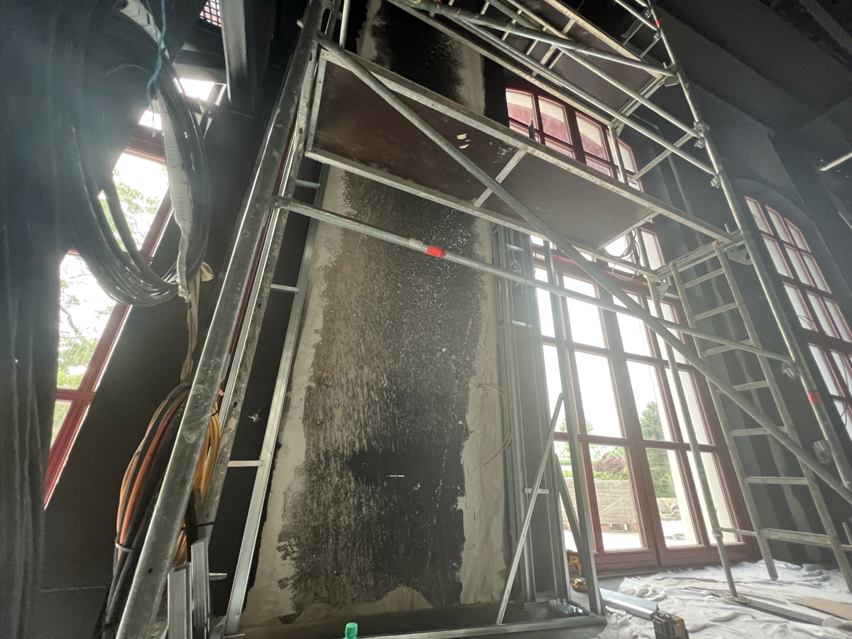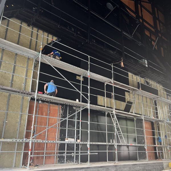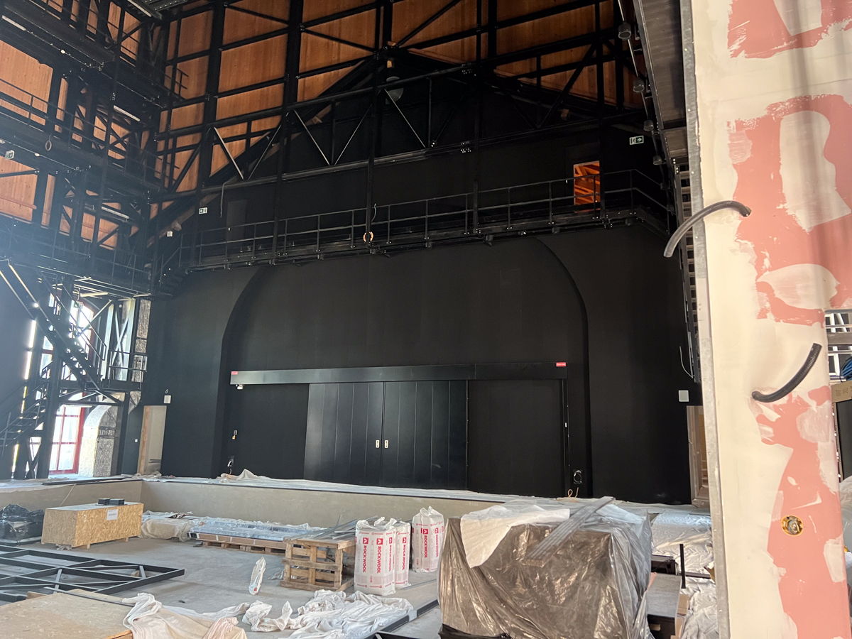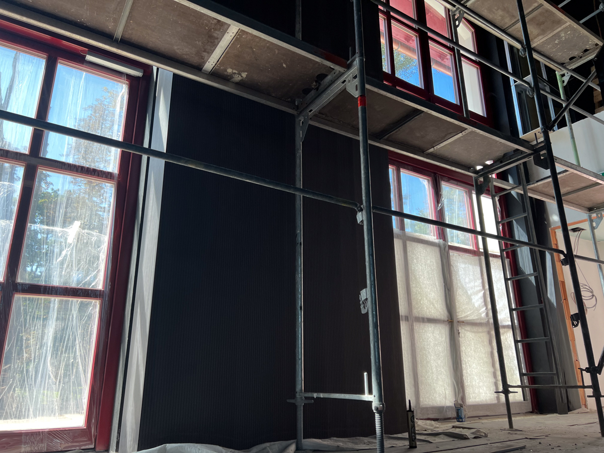 Najväčší podiel plochy tvorí čierna plsť Pro Reverba v protipožiarnej úprave, montovaná na rošt spolu s minerálnou vlnou. Hrúbky výplne boli prispôsobené podľa požiadaviek akustickej štúdie a aplikované najmä na miesta, ktoré neprichádzajú do priameho kontaktu s divákmi.