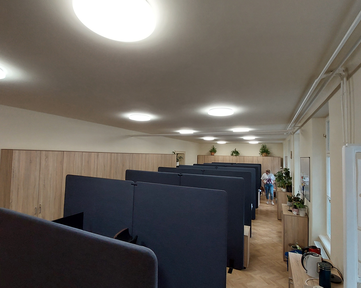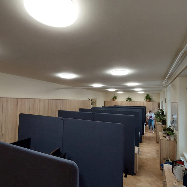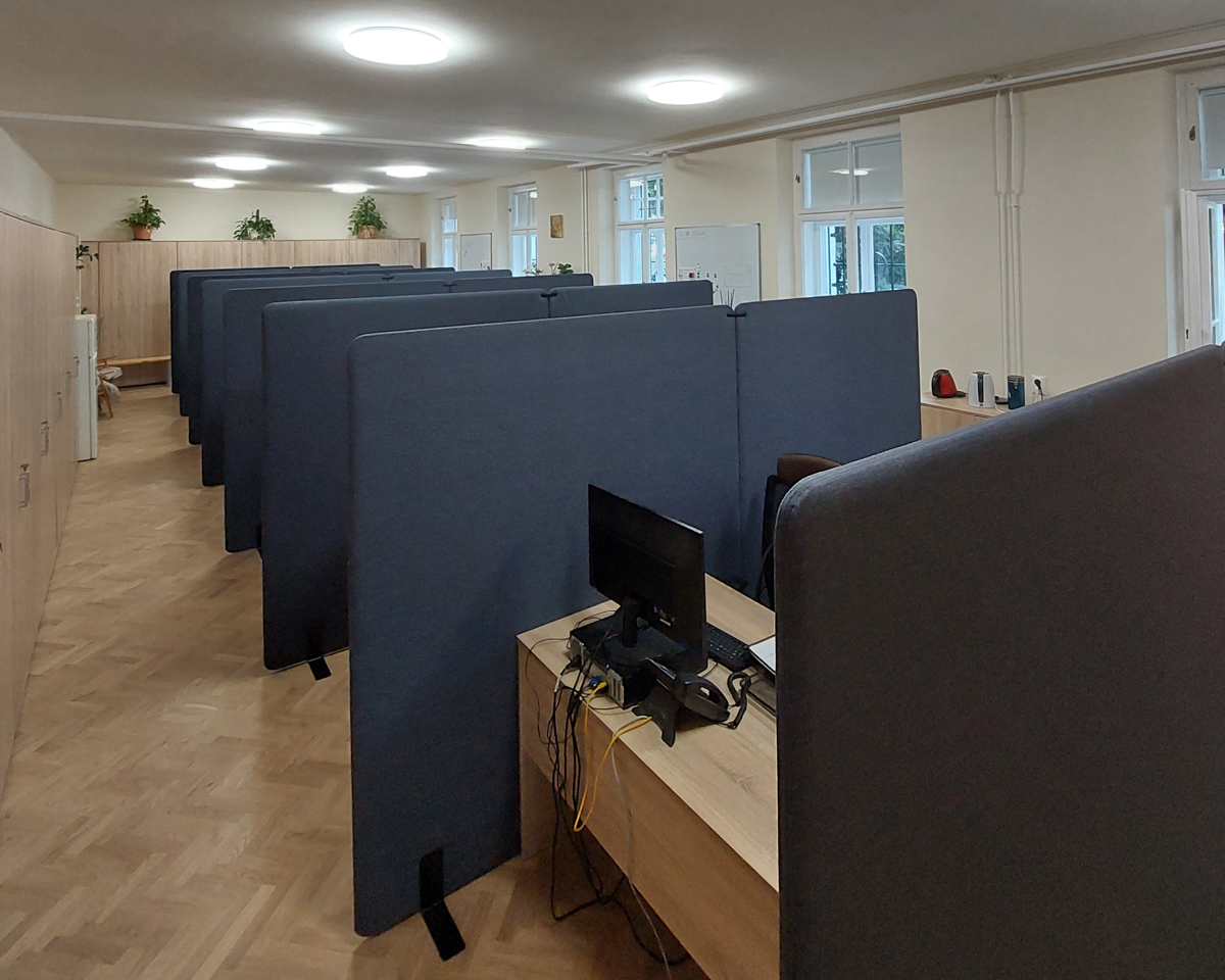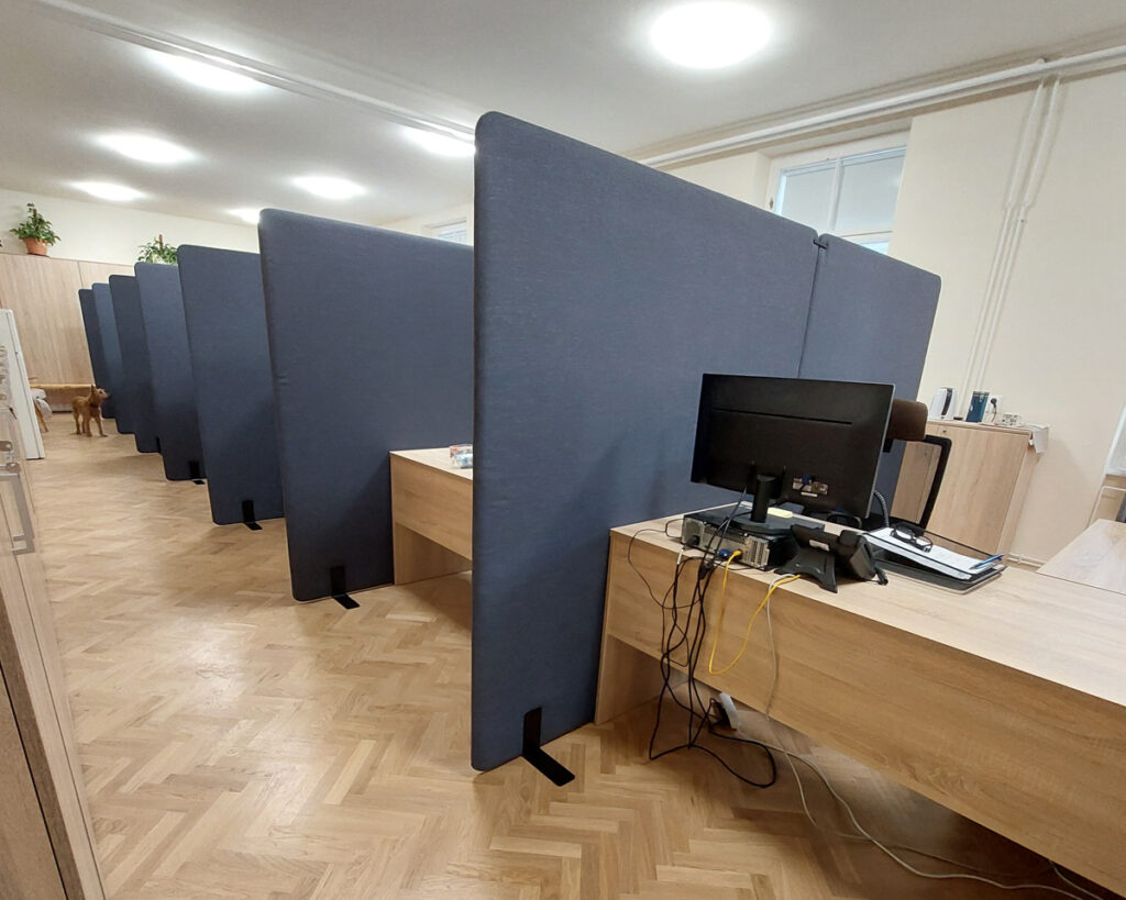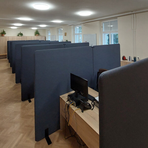 Úspešne sme realizovali projekt pre Filozofickú fakultu Univerzity Komenského, kde sme dodali a namontovali čalúnené akustické paravány. Tento projekt sa zameriaval na zlepšenie akustických podmienok a zníženie šírenia hluku medzi jednotlivými pracovnými stolmi.