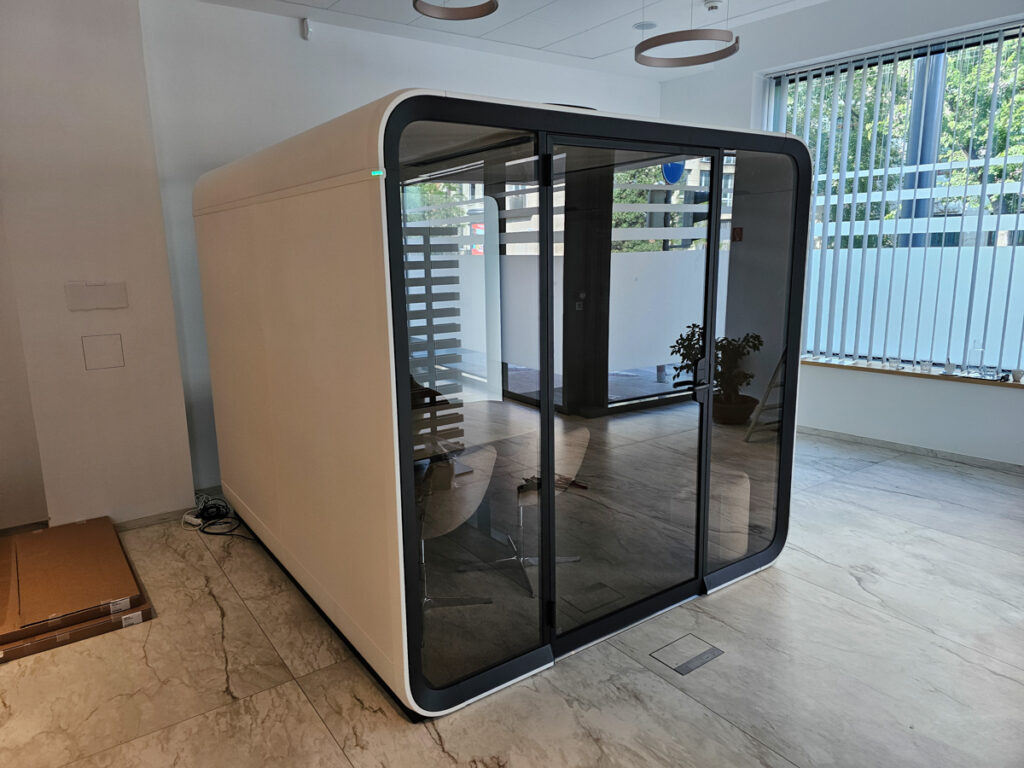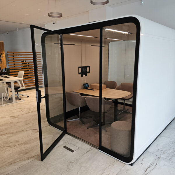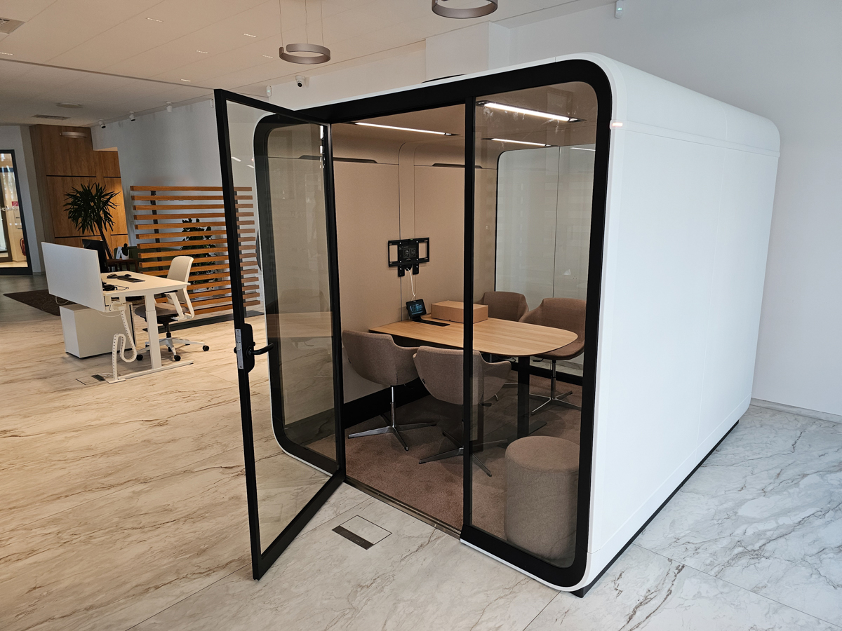 Ako špecialisti na akustické riešenia pre rôzne priestory sme dokázali splniť všetky jeho požiadavky. Framery Six bol navrhnutý tak, aby poskytoval špičkovú zvukovú izoláciu a vytvoril dokonalé podmienky pre dôverné rozhovory. Zároveň je dostatočne priestranný a štýlový, takže skvele poslúži aj ako reprezentatívne miesto na stretnutia s klientmi.