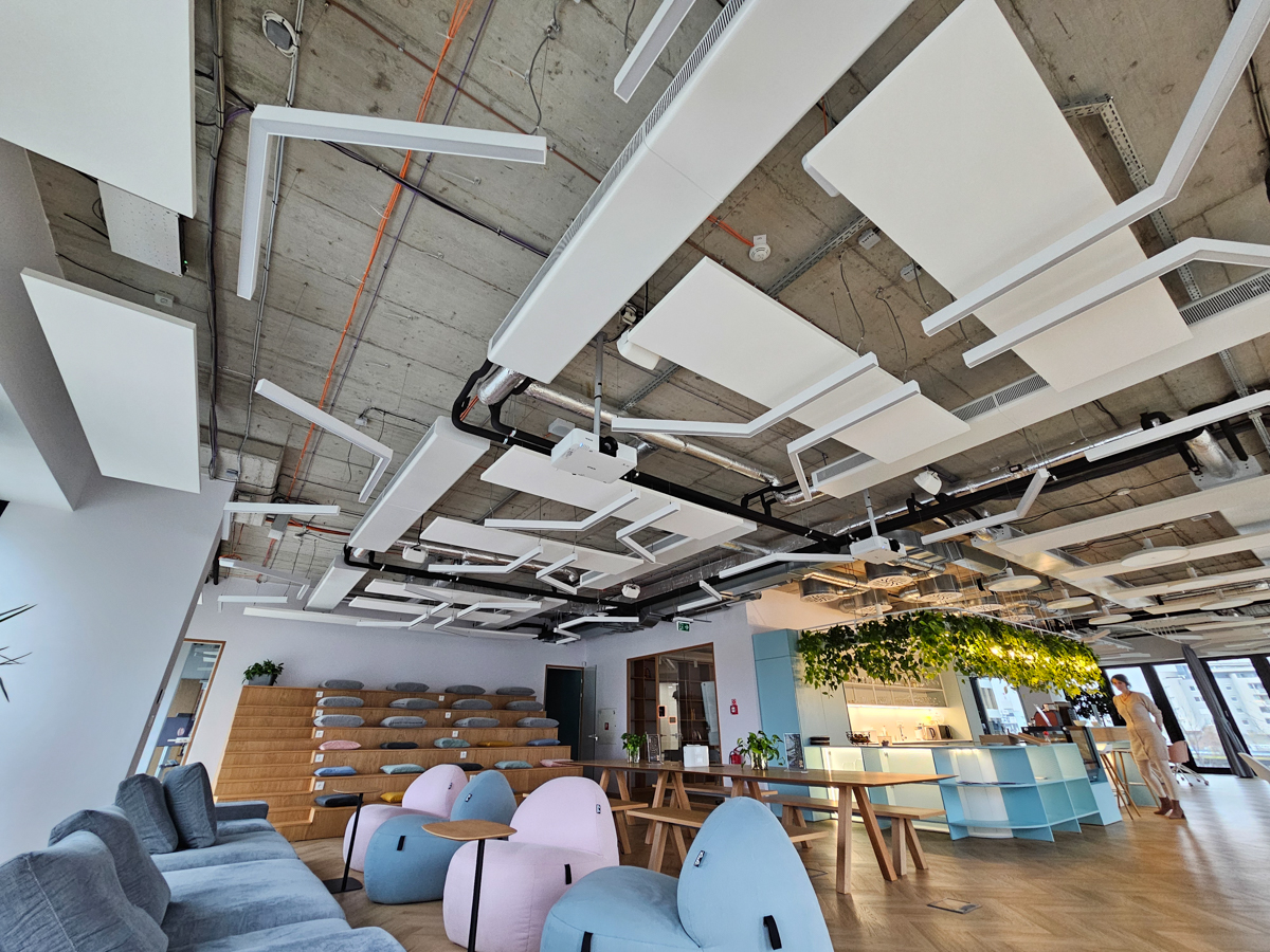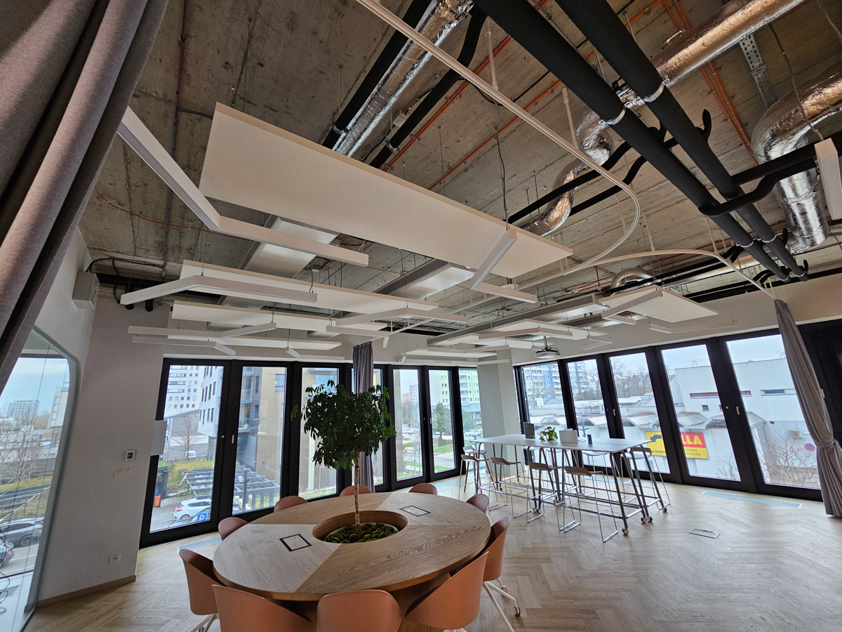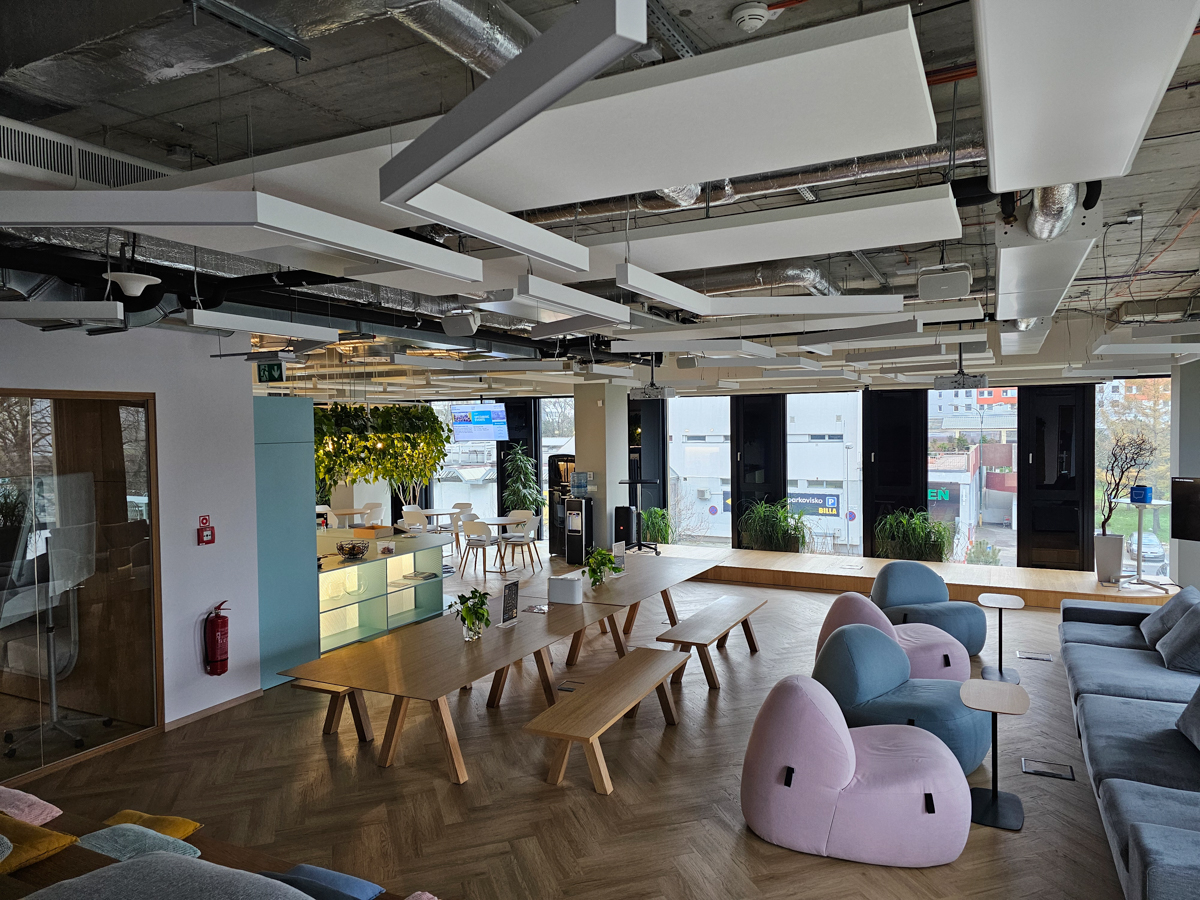 Na základe týchto výsledkov sme spolu s architektmi z firmy Zeit Architects navrhli umiestnenie akustických panelov, ktoré nielen zlepšili akustiku, ale zároveň doplnili estetiku oceneného interiéru, ktorý získal titul Office roka 2023 v kategórii Inovatívna kancelária.