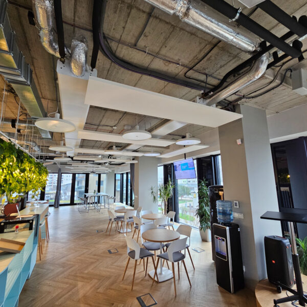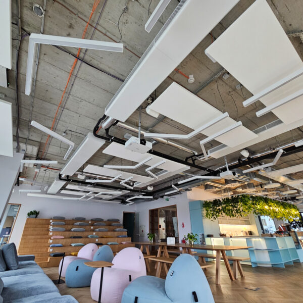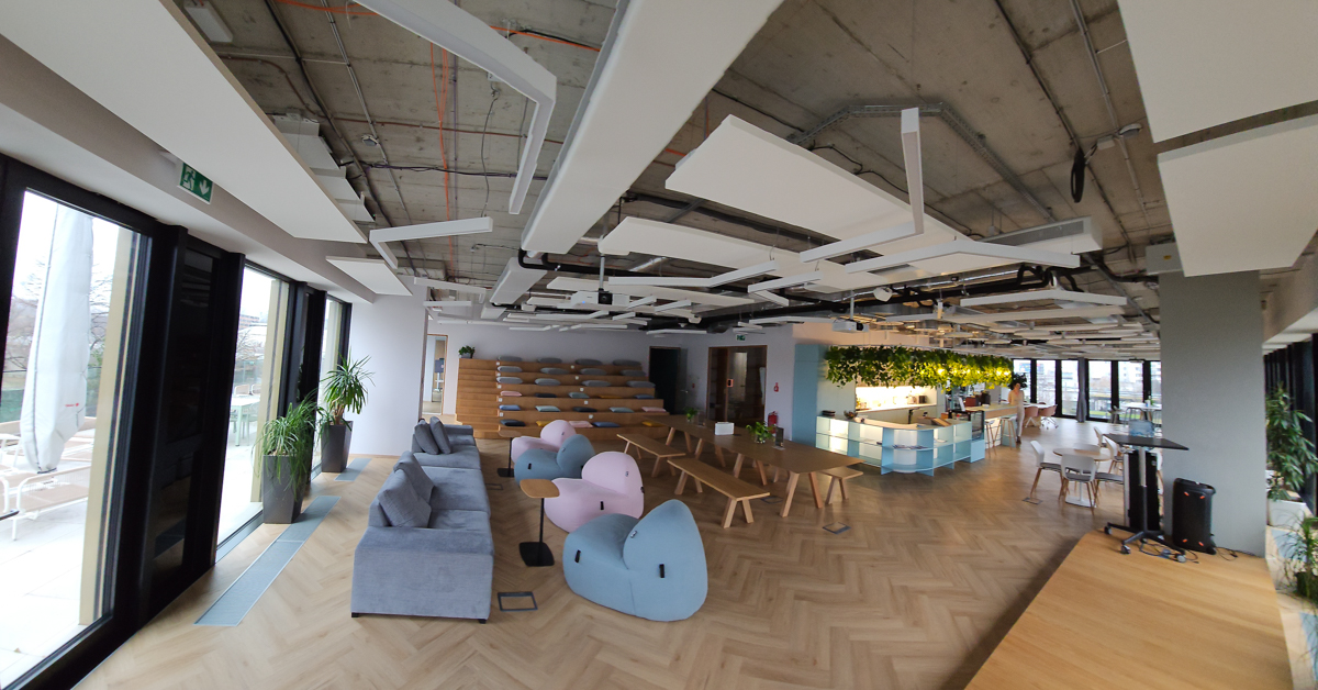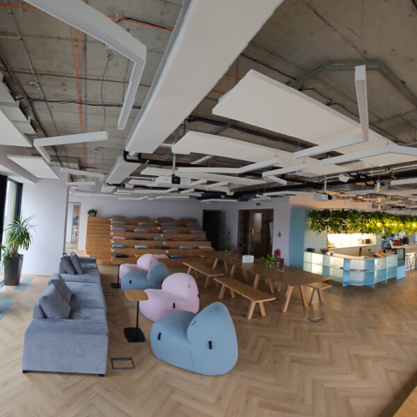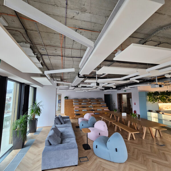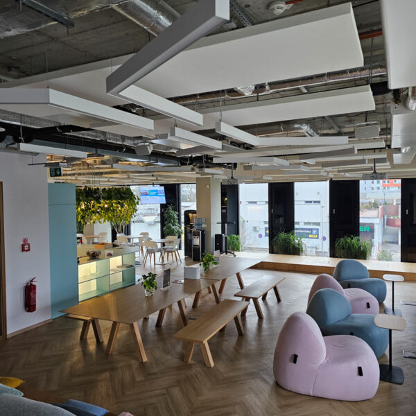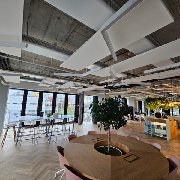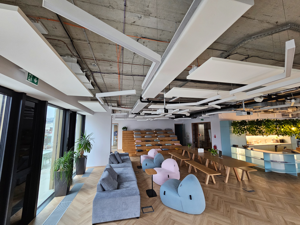 Na základe týchto výsledkov sme spolu s architektmi z firmy Zeit Architects navrhli umiestnenie akustických panelov, ktoré nielen zlepšili akustiku, ale zároveň doplnili estetiku oceneného interiéru, ktorý získal titul Office roka 2023 v kategórii Inovatívna kancelária.