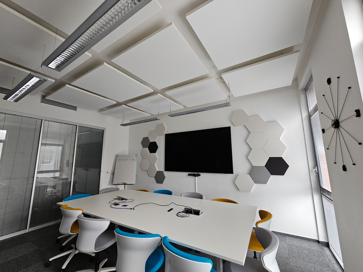 Cieľom projektu bolo optimalizovať akustické podmienky v priestore, tak aby sa zlepšila kvalita zvuku počas videohovorov a vytvorila sa príjemné pracovné prostredie pre zamestnancov.