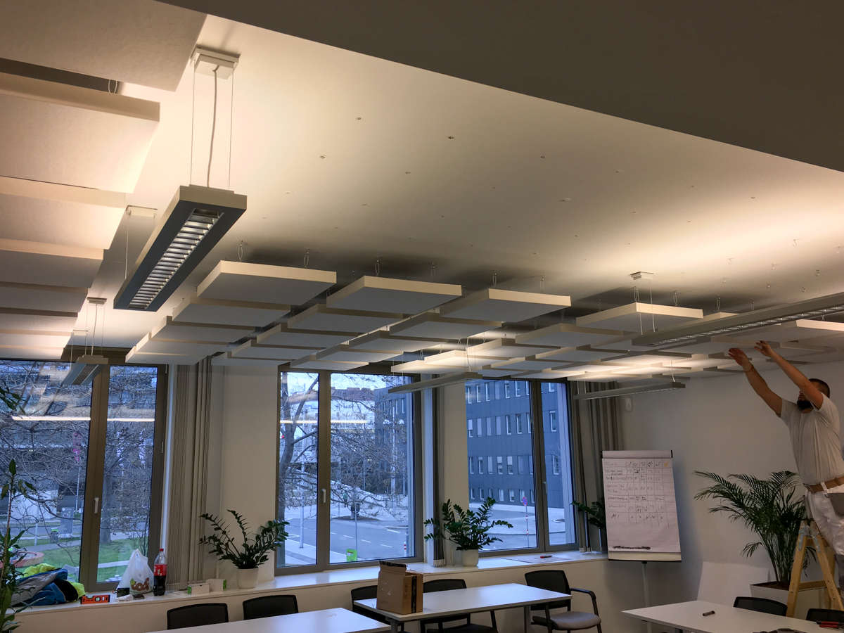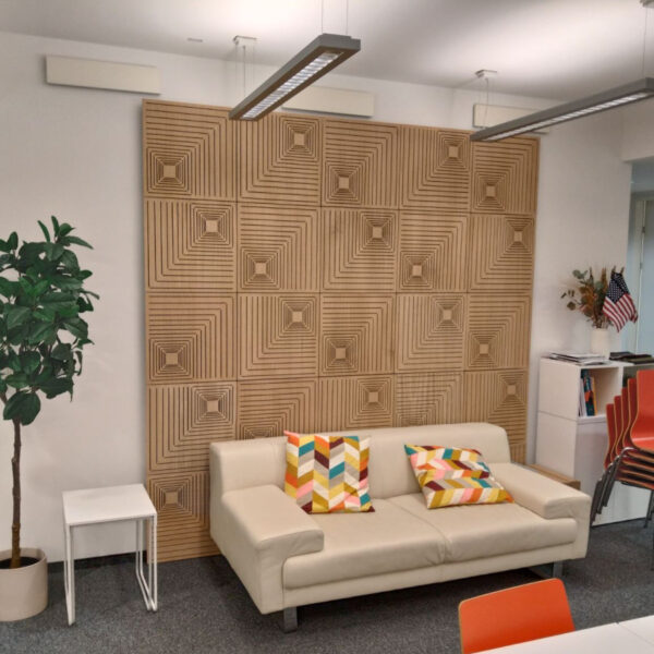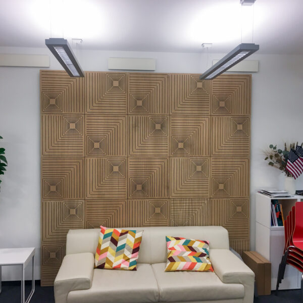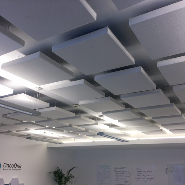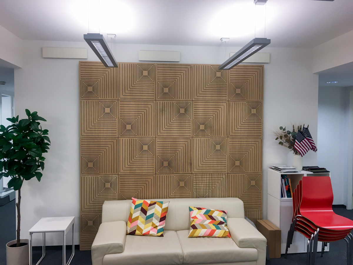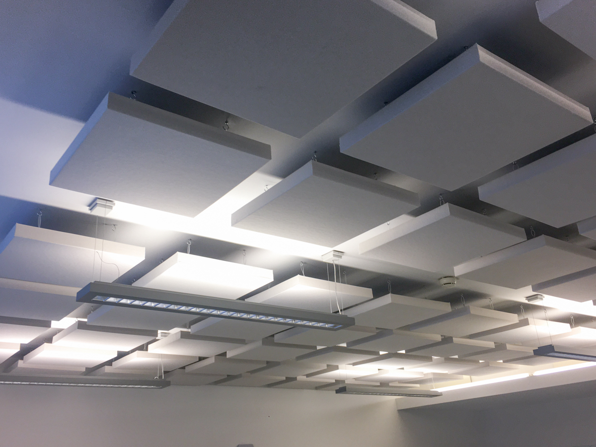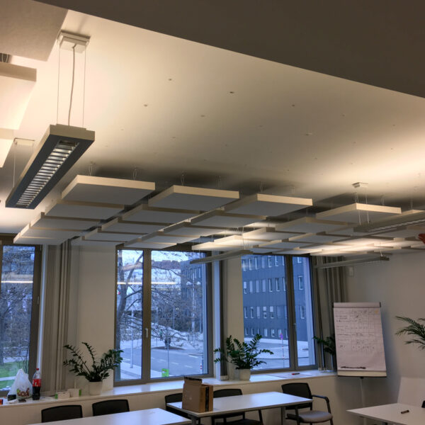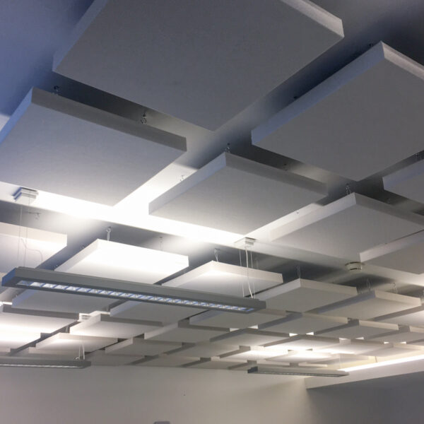 Pre nášho klienta sme riešili problém s nadmernou ozvenou v zasadačke, ktorá narúšala efektívnu komunikáciu. Inštalovali sme akustické závesné panely Echo Cloud v tvare štvorca, ktoré sme umiestnili pod strop, čím sme dosiahli zlepšenie akustických podmienok.