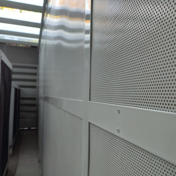 Pri návrhu sme brali do úvahy dôležitý aspekt – dostatočný prísun čerstvého vzduchu, ktorý je nevyhnutný pre správne fungovanie vzduchotechniky. Vďaka tomuto riešeniu sme dosiahli nielen úspešné odhlučnenie, ale aj zachovali plnú funkčnosť zariadenia.