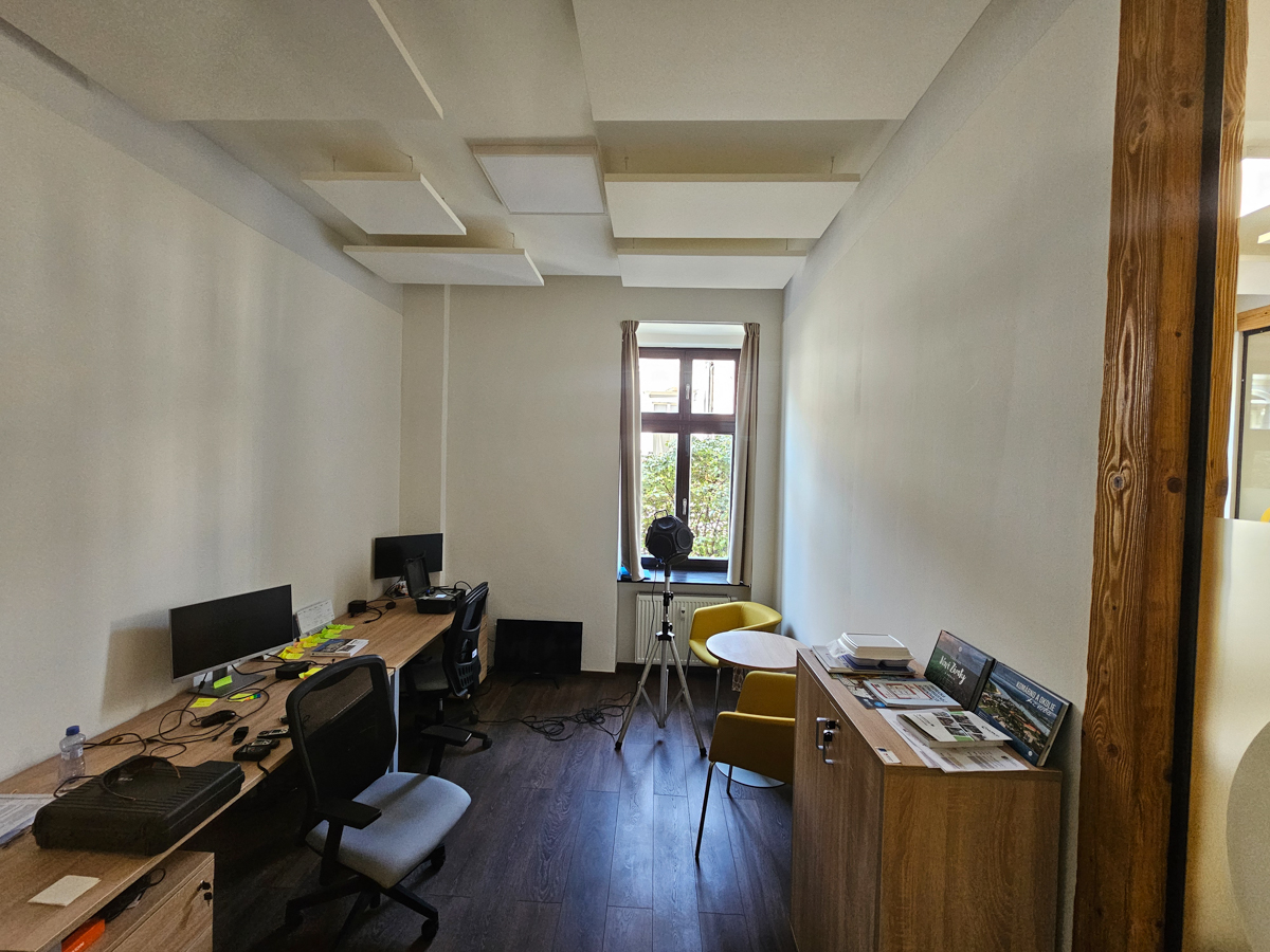 Klient nás oslovil so sťažnosťami na nadmerný hluk a ozvenu, ktoré negatívne ovplyvňovali pracovný výkon zamestnancov a celkovú atmosféru v administratívnych priestoroch. Po dôkladnej analýze priestoru sme zistili, že akustické podmienky sú nevyhovujúce, čo vyžadovalo okamžitú pozornosť.