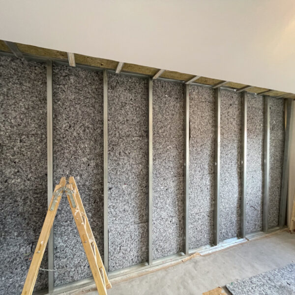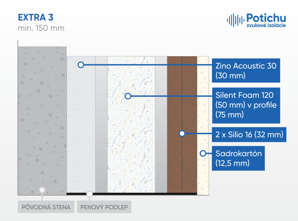 Na odhlučnenie spoločnej priečky medzi bytmi sme použili systém EXTRA 3, ktorý zabezpečuje vysoký stupeň zvukovej izolácie. Zároveň si klient vyžiadal odhlučniť stenu v tej istej miestnosti smerom k zvyšku bytu pomocou systému Optimal 3.