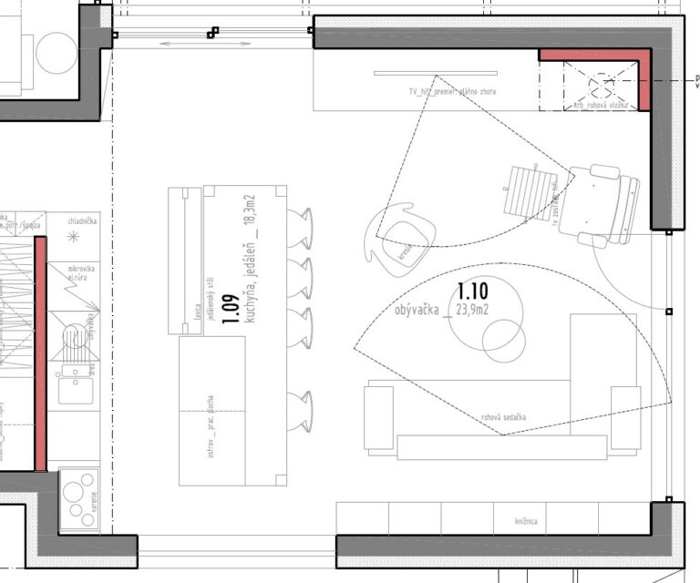 V porovnaní s malou vstupnou chodbou, či niektorou inou miestnosťou je to sakra rozdiel a my môžeme len dumať, či ešte vieme nejako tu akustiku lepšie zapracovať (v ostatných miestnostiach) tak, aby to bolo aj vizuálne prijateľné.